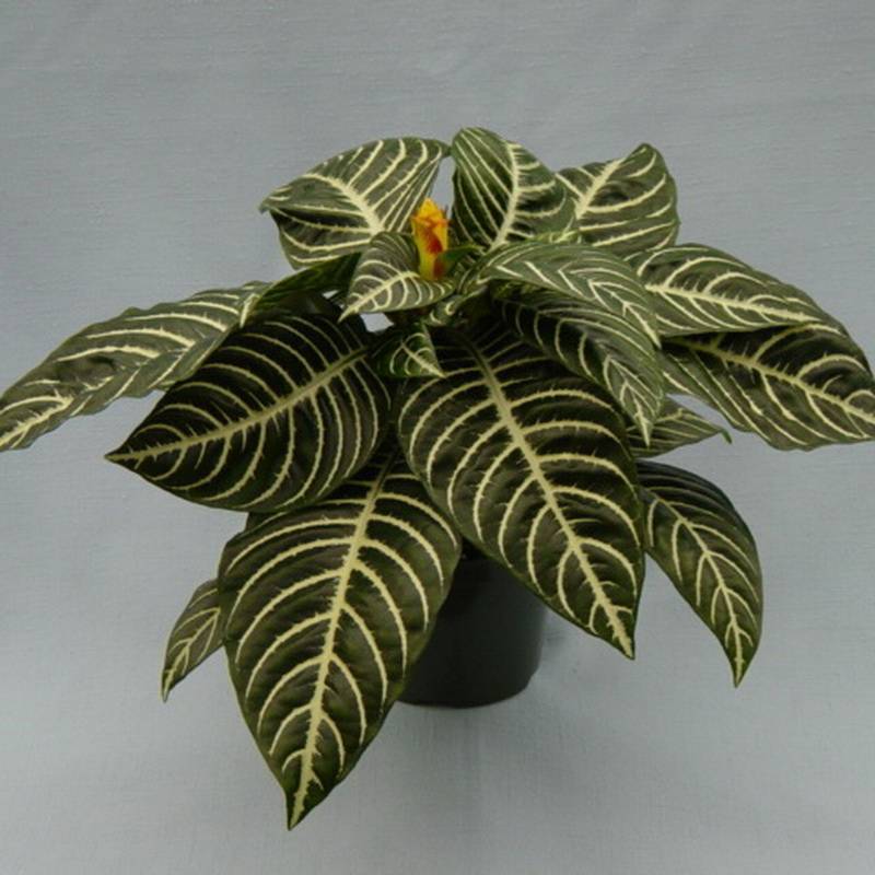 Афеландра принадлежит к классу декоративнолиственных и красивоцветущих культур. Широкие яйцевидные листья имеют контрастный окрас с кремово-белыми прожилинами-узорами на насыщенно-зеленом фоне. В зависимости от вида мясистые пластины гладкие или гофрированные, бывают с шипованной поверхностью, покрыты сизоватым налетом с тыльной стороны.