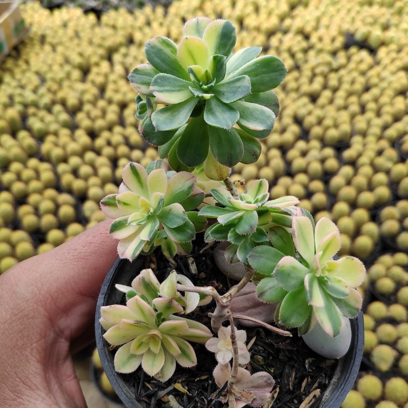 Своими силами подготовленный состав почвы окажется наилучшим вариантом в отношении корневой системы аихризона. В этих целях применяют одинаковые пропорции дерновой и торфяной земли, крупного песка и не мелкого гравия или керамзита. Последний выступает в виде дренажа. Фрагменты березового угля окажутся успешным дополнением.