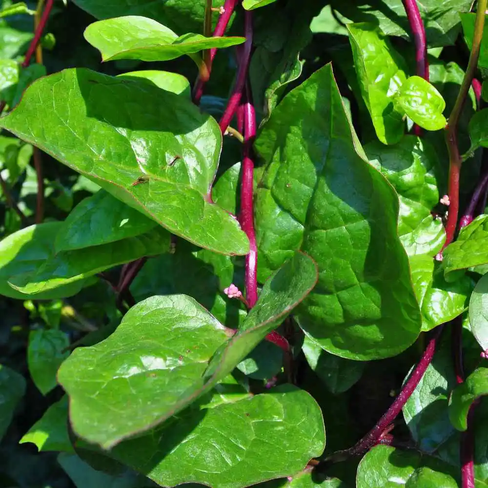 Базелла (Basella), по сути, является травянистой лианой. Эффектный на вид малабарский шпинат принадлежит к семейству Базелловые. Стебли по структуре мясистые, могут достичь длины 10 м, их обрастает тонкая кожица древесного вида, зеленого или красноватого оттенка. По характеристикам листья растут в обратнояйцевидной форме. У них кожистая поверхность, на которой отчетливо заметны прожилки.