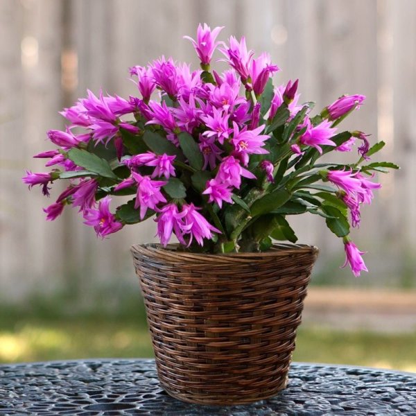 Период цветения зигокактуса начинается с конца осени и продолжается до первого зимнего месяца. В зависимости от качества ухода и внешних условий он может затянуться до января-февраля. Лучше всего поставить растение в место, куда не попадают напрямую солнечные лучи. Оно любит полутень и не отличается привередливостью. Шлюмбергера достигает в длину до 40 см, а стебли с растущими цветами спадают вниз. Оттенки лепестков могут быть светлыми, ярко-алыми, фиолетовыми, оранжевыми или смешанными.