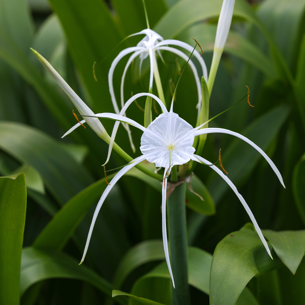 Hymenocallis Caribbean — это тропическое луковичное растение, принадлежащее к семейству амариллисовых. Hymenocallis Caribbean известен своими белыми трубчатыми цветами, которые цветут группами в летние месяцы. Цветки имеют длинные узкие лепестки, которые загибаются назад, как паучьи лапки, и испускают сладкий аромат ночью.