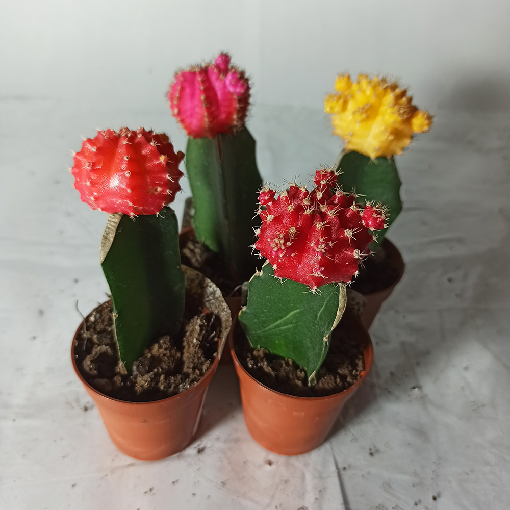 Желтые и красные кактусы нельзя размножать привычными методами. Единственный вариант для них – это прививка на другой, зеленый кактус. Чтобы это сделать, нужно срезать экземпляр без хлорофилла, а также верхнюю часть обычного гимнокалициума. Затем красный или желтый кактус располагают на зеленом, закрепляют с помощью ленты или резинки.