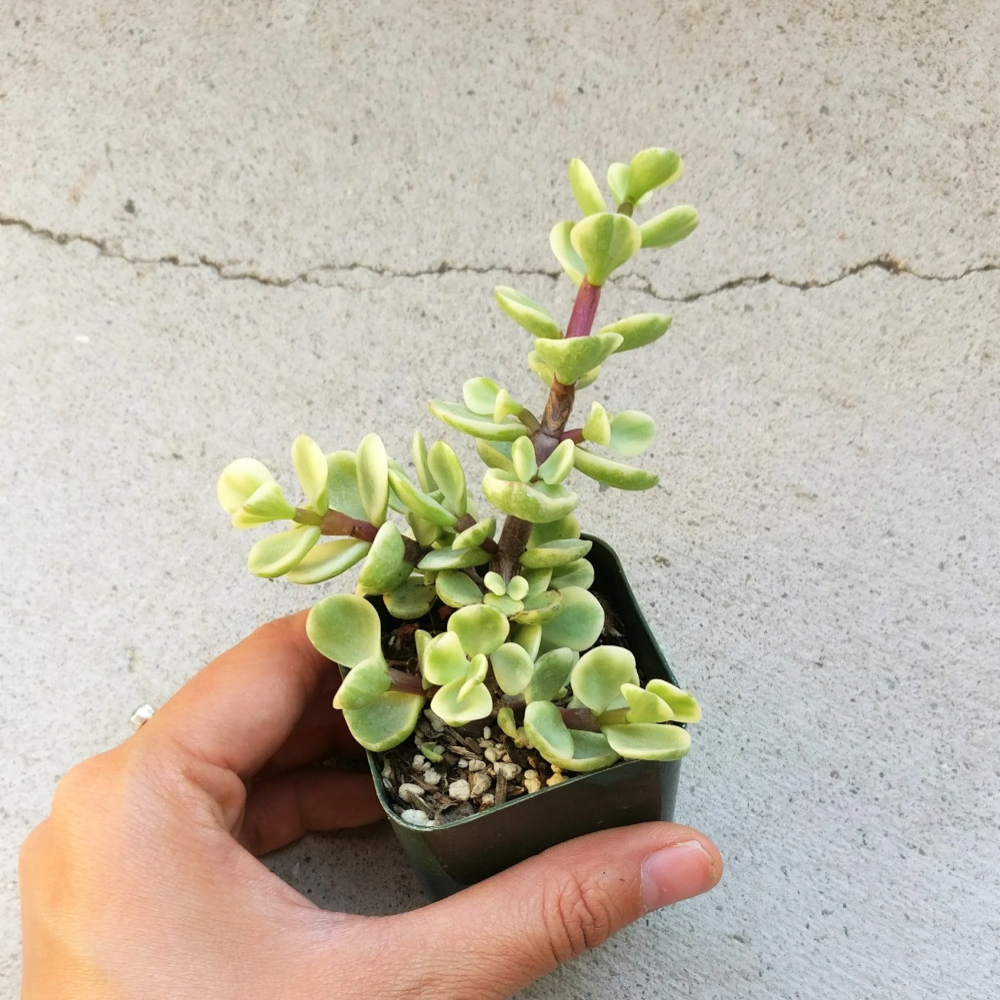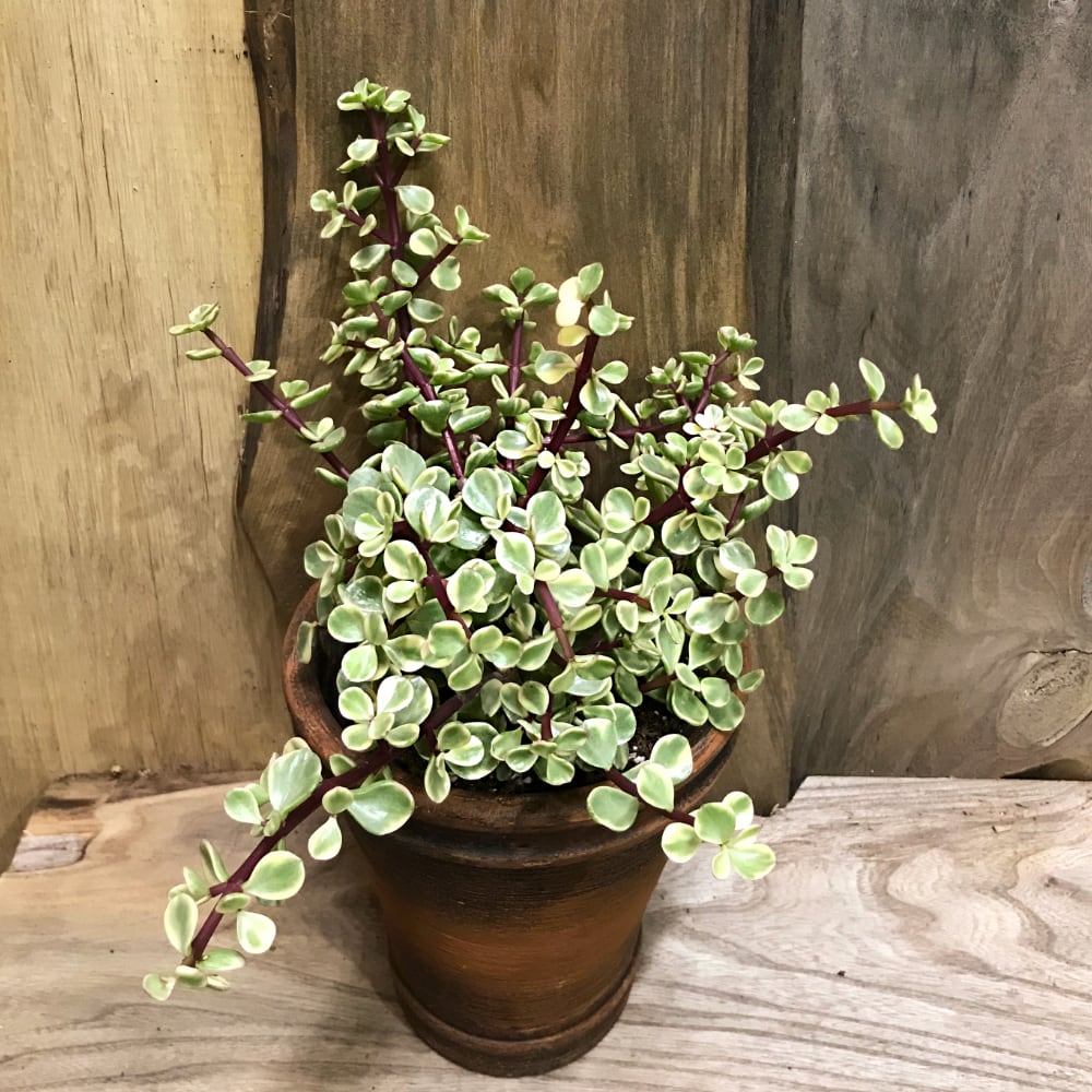 Вариегатная портулакария носит явно декоративный характер. В высоту вариегатная может практически напоминать дерево, вырастая до 1 м. она выделяется, в первую очередь, эффектный тон листовых пластин. Для кантика характерны серебристые оттенки, а в середине образуется светло-зеленое пространство