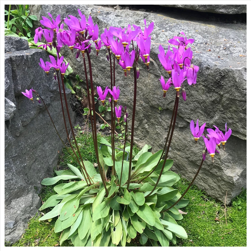 Если вы предпочитаете клумбы – отличным выбором станет строгий классический стиль. Яркие розовые, сиреневые и белые цветы додекатеона особенно хорошо сочетаются с темными оттенками.